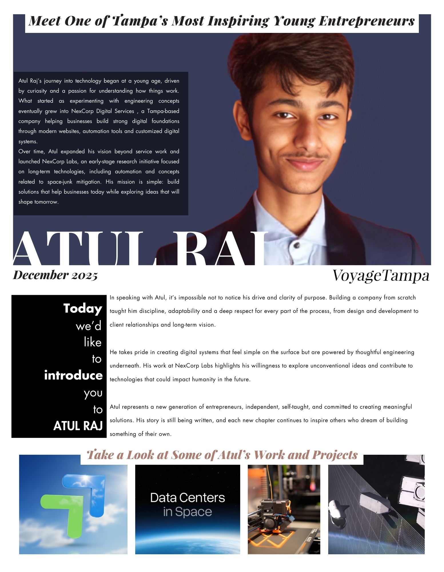 In December 2025, I was featured by VoyageTampa in a conversation about entrepreneurship, building NexCorp, and the mindset behind creating scalable systems from a young age.